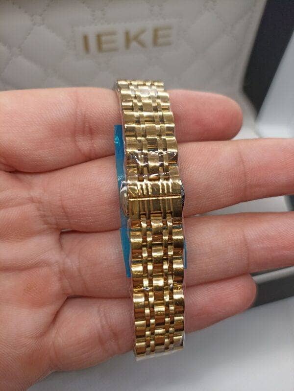 ✔️ Une montre dorée à maillons fins et cadran argenté épuré