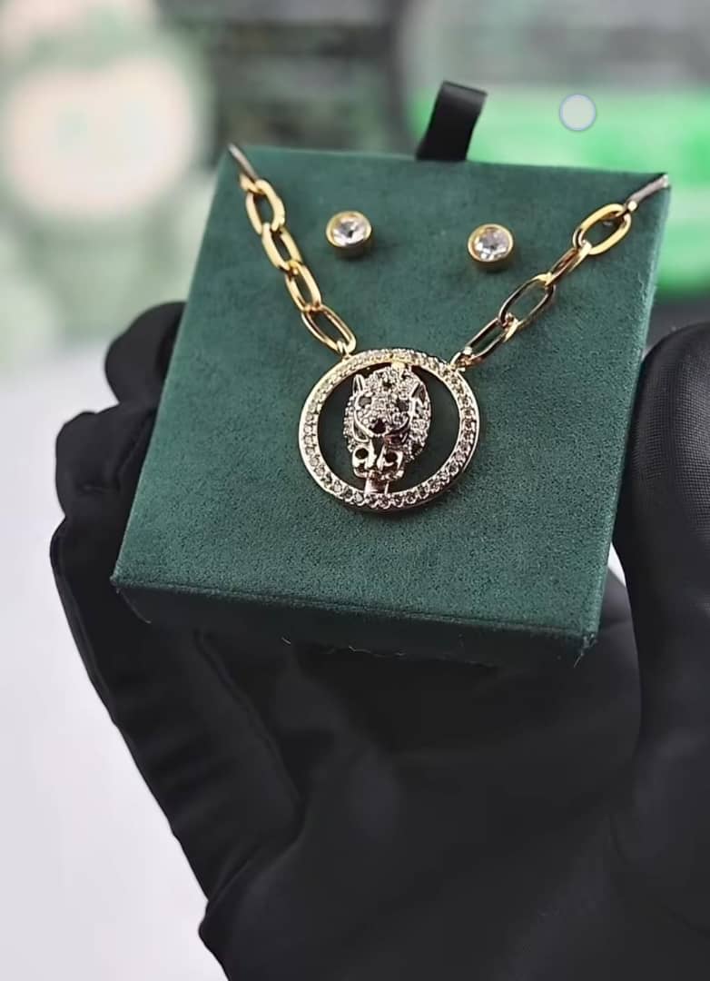 Un collier et un bracelet audacieux au motif Panthère serti de cristaux.